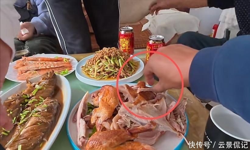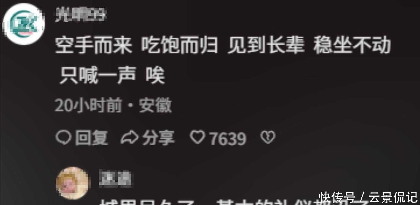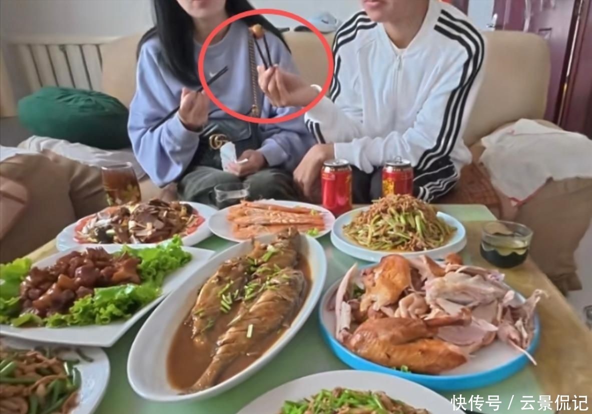 长辈仍在忙碌端菜倒水,他的儿子已率先伸筷夹菜。