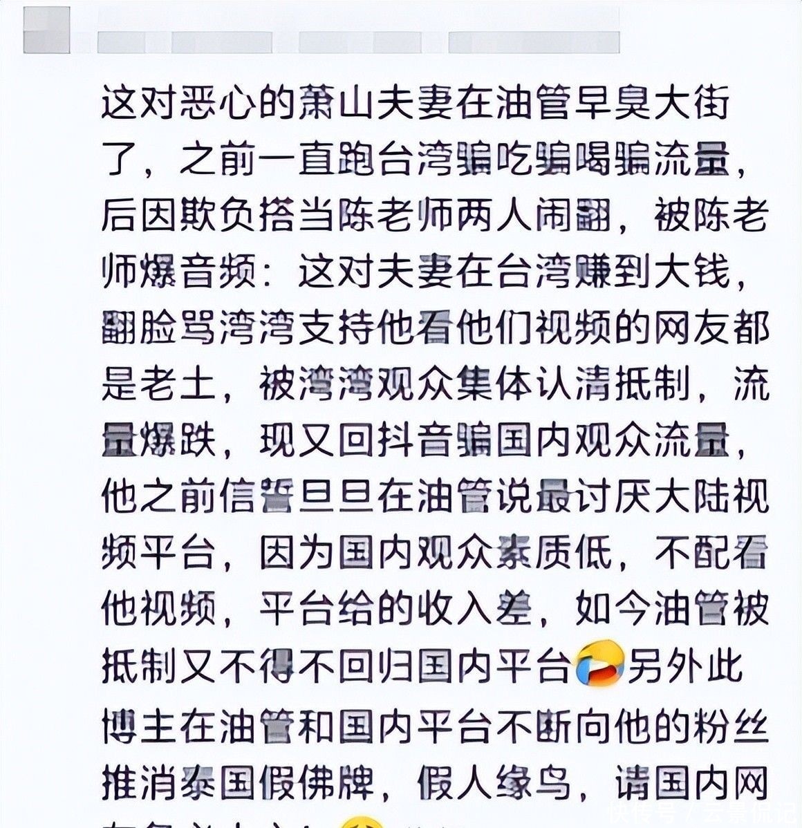 甚至公开贬低祖国以换取境外平台流量收益!