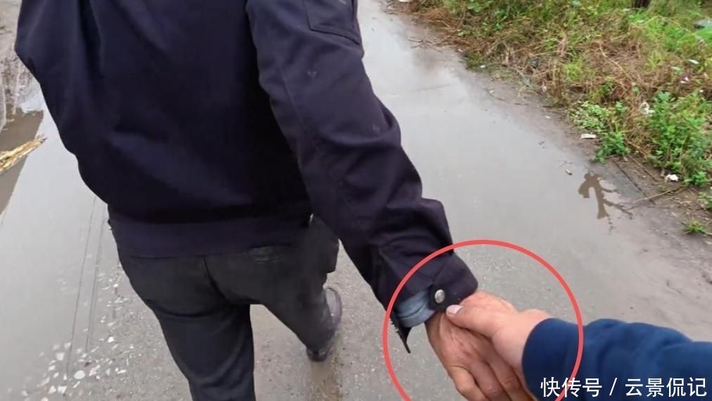 相认瞬间,叔叔激动地挽着他手臂往家里带。